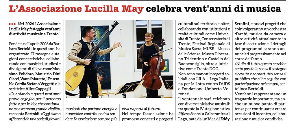 Attiva sia come didatta che concertista, Bertoldi è un autentico vulcano… (Il Trentino, K. Casagranda)
